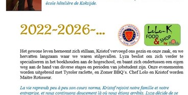 Het gewone leven herneemt zich stillaan, Kristof vervoegd ons gezin en onze zaak, en we hervatten langzaam waar we waren stilgevallen. Lyza beslist om zich verder te specialiseren in het boekhouden aan de hogeschool, en baant zich ondertussen een eigen weg aan de hand van diverse stages en perioden van jobstudent zijn. Onze evenementen worden uitgebreid met Tyroler raclette, en Zomer BBQ’s. Chef Lolo en Kristof worden Maitre Rotisseur.